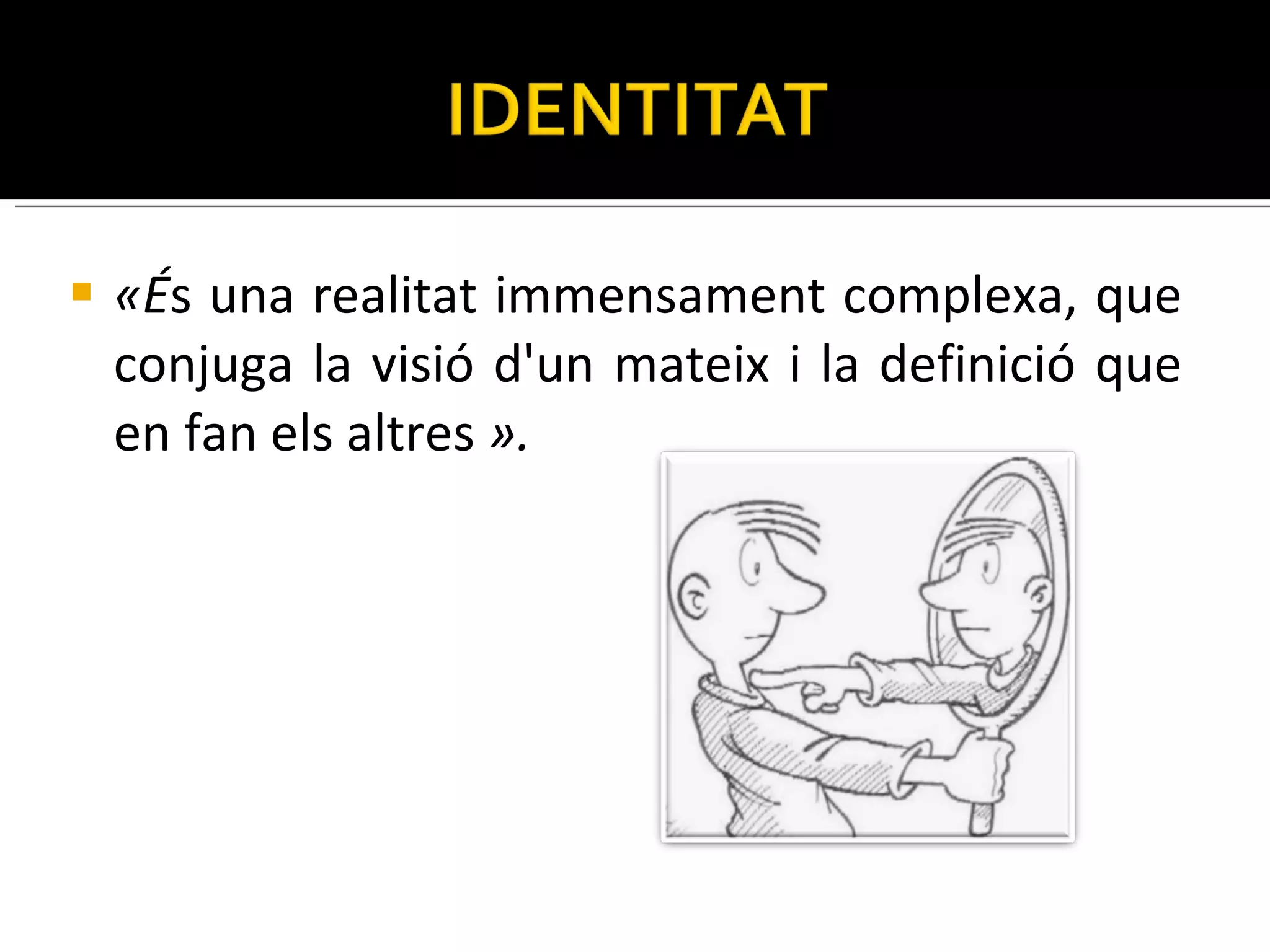 « É suna realitat immensament complexa, que conjuga la visió d'un mateix i la definició que en fan els altres ».