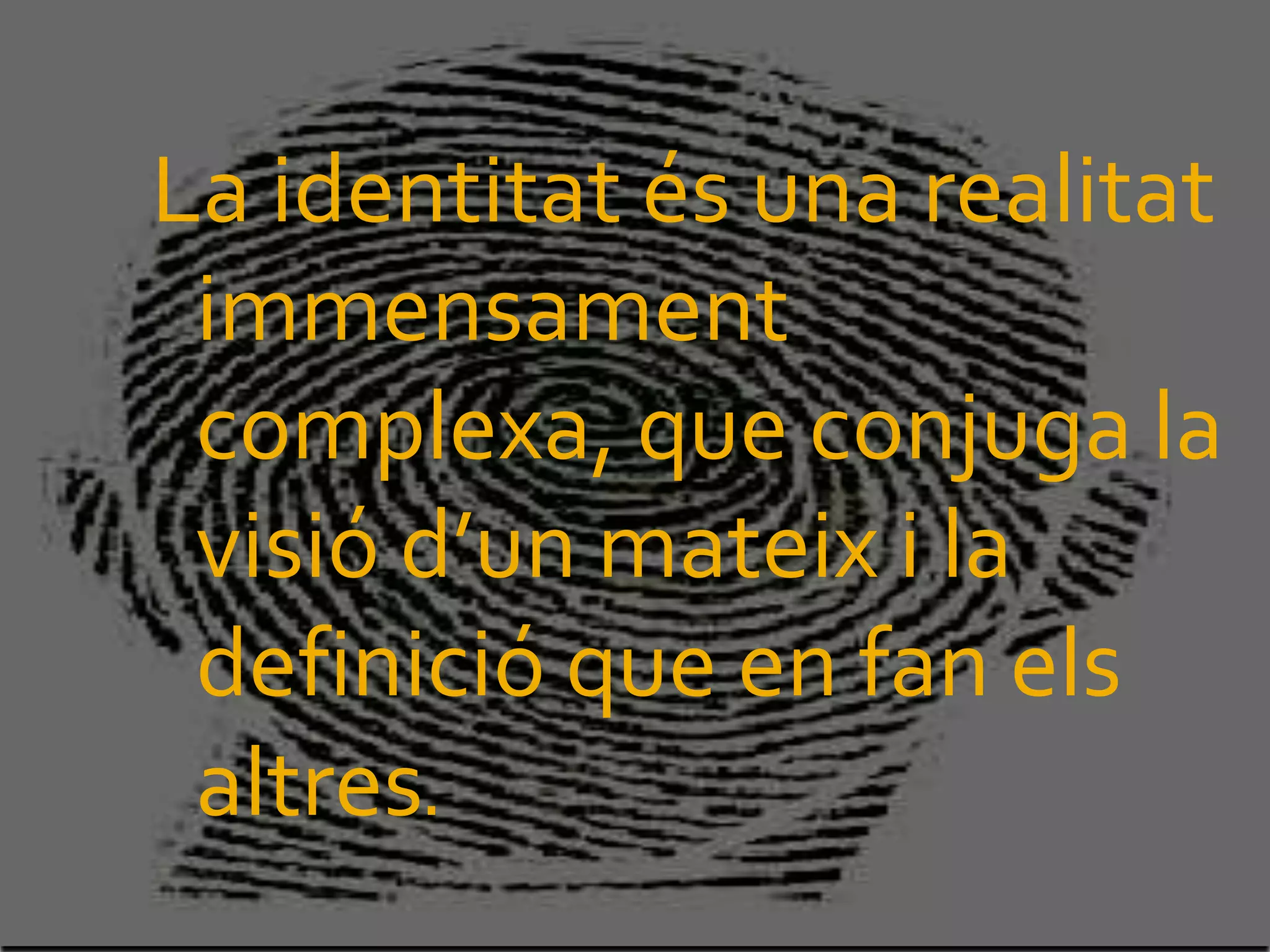 La identitat ésuna realitat immensament complexa, que conjuga la visió d’un mateix i la definició que en fan els altres.