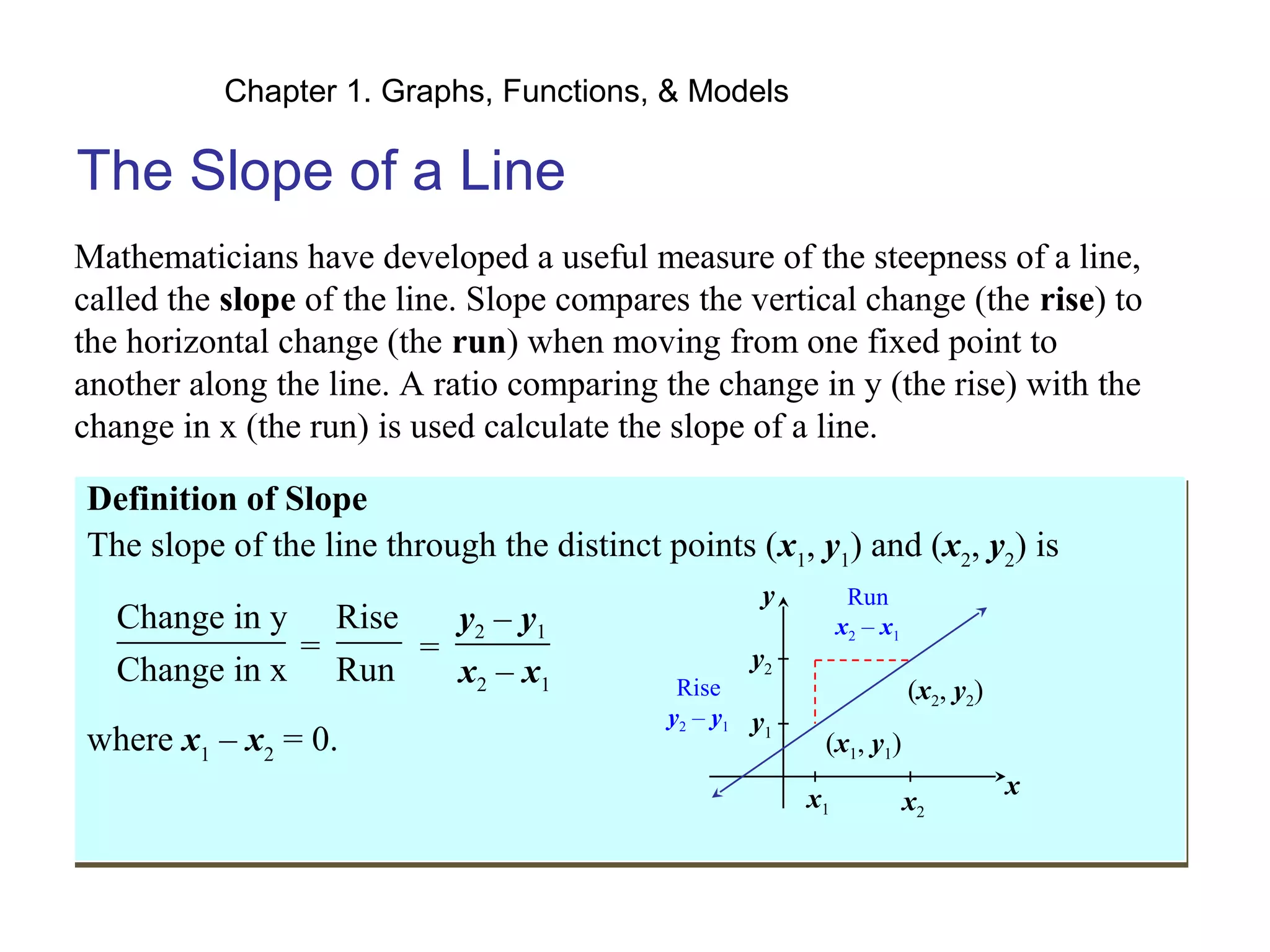The document discusses the concept of slope and how it is used to describe the steepness of a line. It defines slope as the ratio of the vertical change (rise) to the horizontal change (run) between two points on a line. Several forms of linear equations are presented, including point-slope form, slope-intercept form, and standard form. Relationships between parallel and perpendicular lines based on their slopes are also described. Examples are provided to demonstrate finding slopes, writing equations of lines, and determining if lines are parallel or perpendicular based on their slopes.