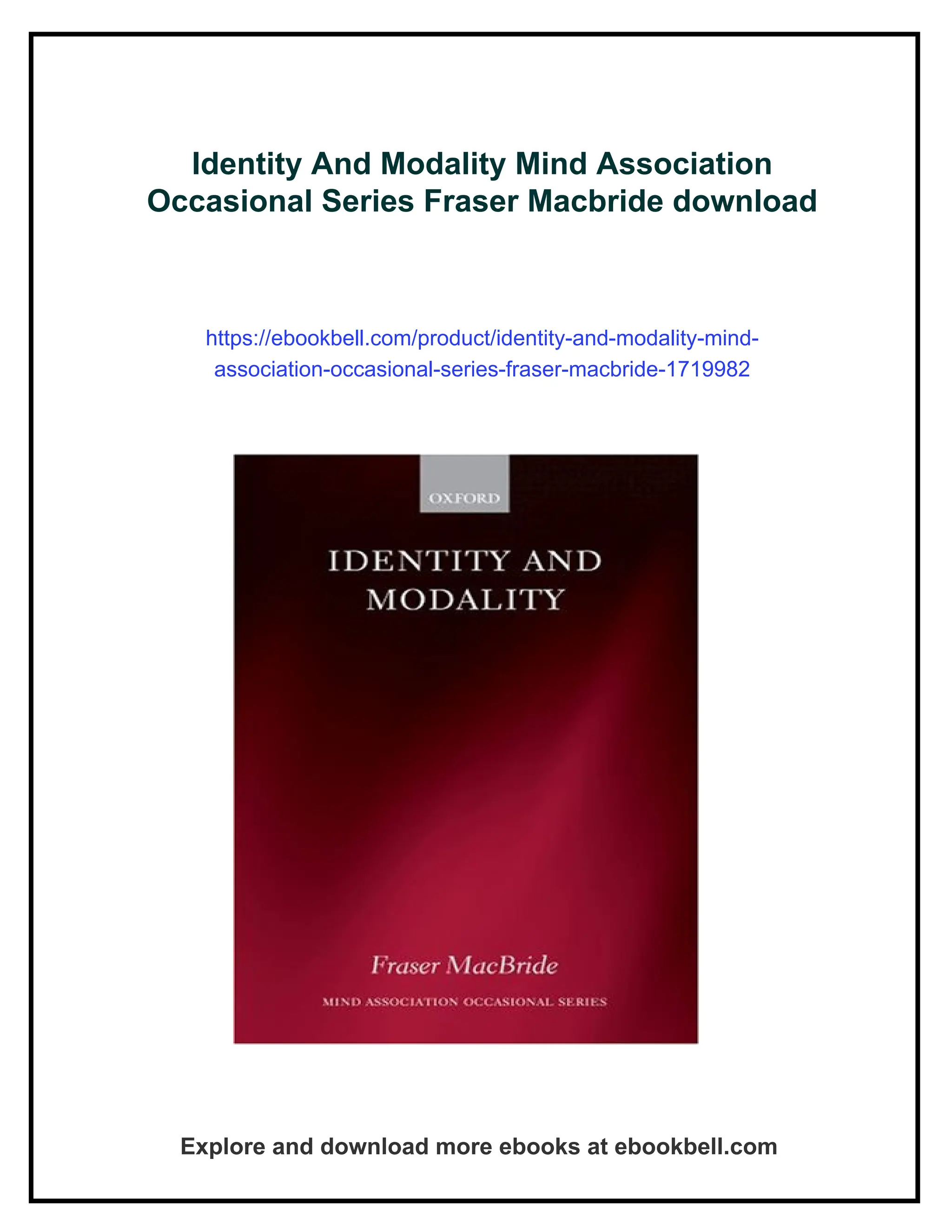 Identity And Modality Mind Association Occasional Series Fraser Macbride
