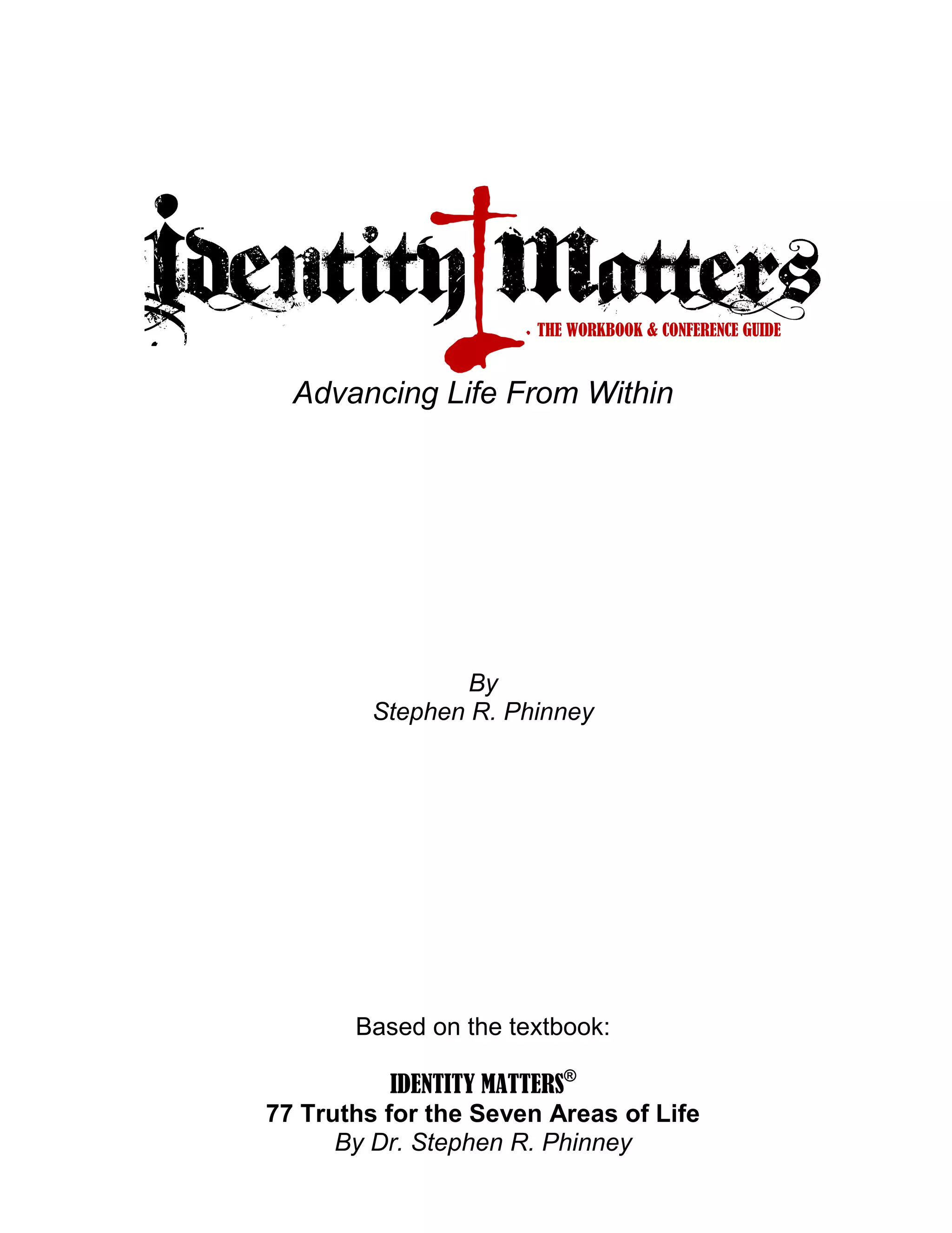 The document is a workbook and conference guide by Dr. Stephen R. Phinney, aimed at facilitating understanding and living out the concept of the 'exchanged life' through spiritual growth and identity in Christ. It outlines seven essential areas of life and provides resources for spiritual coaching and discipleship. The work emphasizes the importance of experiential knowledge over formal education in ministry, encouraging a genuine and spiritually empowered approach to helping others.