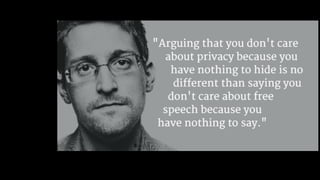 Identity theft and cybercrime pose real threats that are growing as organized criminal networks engage in cybercrime as a profitable business. As developers, we must be aware of security risks and integrate protections into our work, including securing passwords, preventing SQL injection, and avoiding cross-site scripting vulnerabilities. The Open Web Application Security Project (OWASP) provides guidance on application security best practices developers should follow.