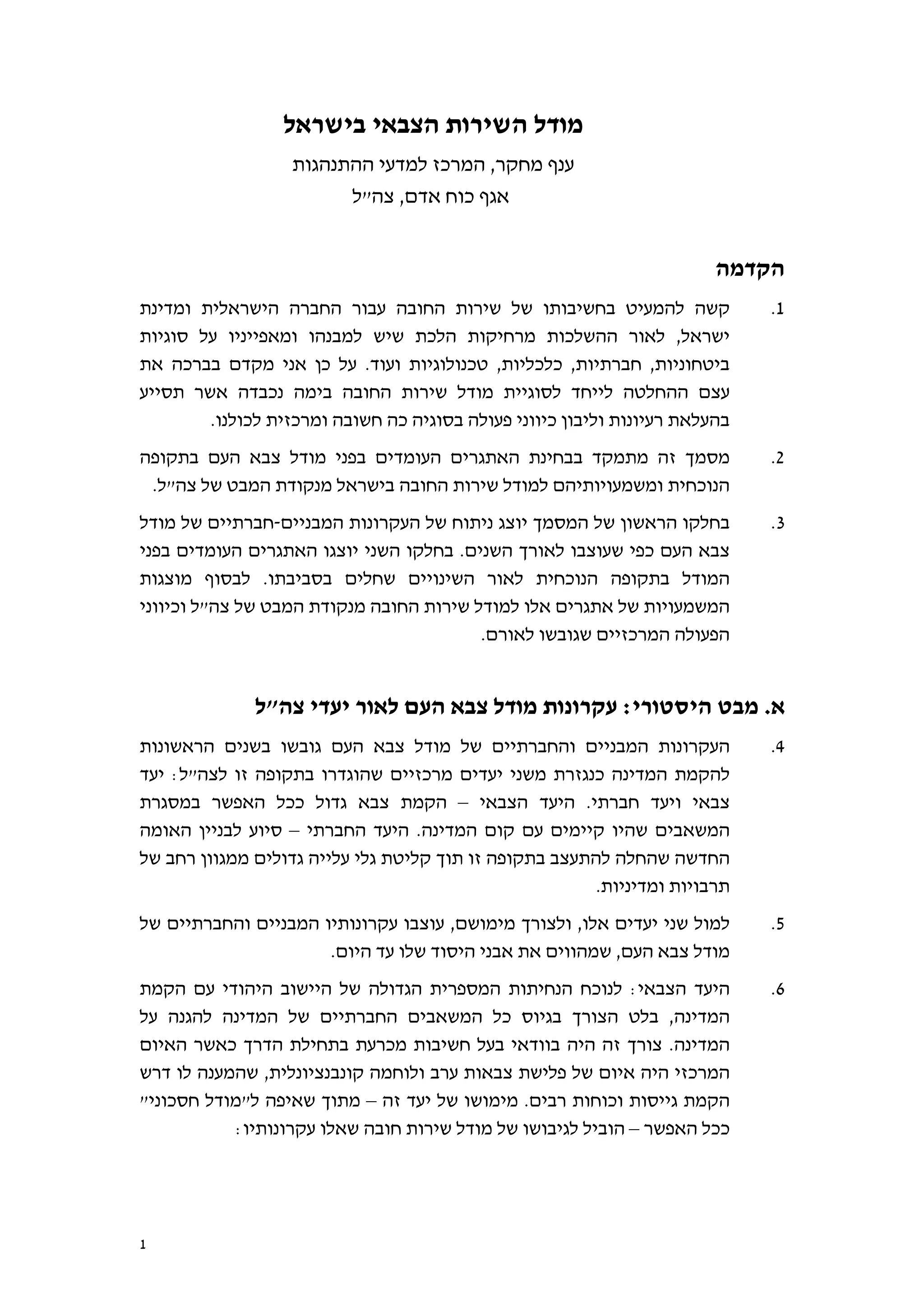 צבאית )תשתית לשימור המודל והמענה לצורך הביטחוני( למיסודו של