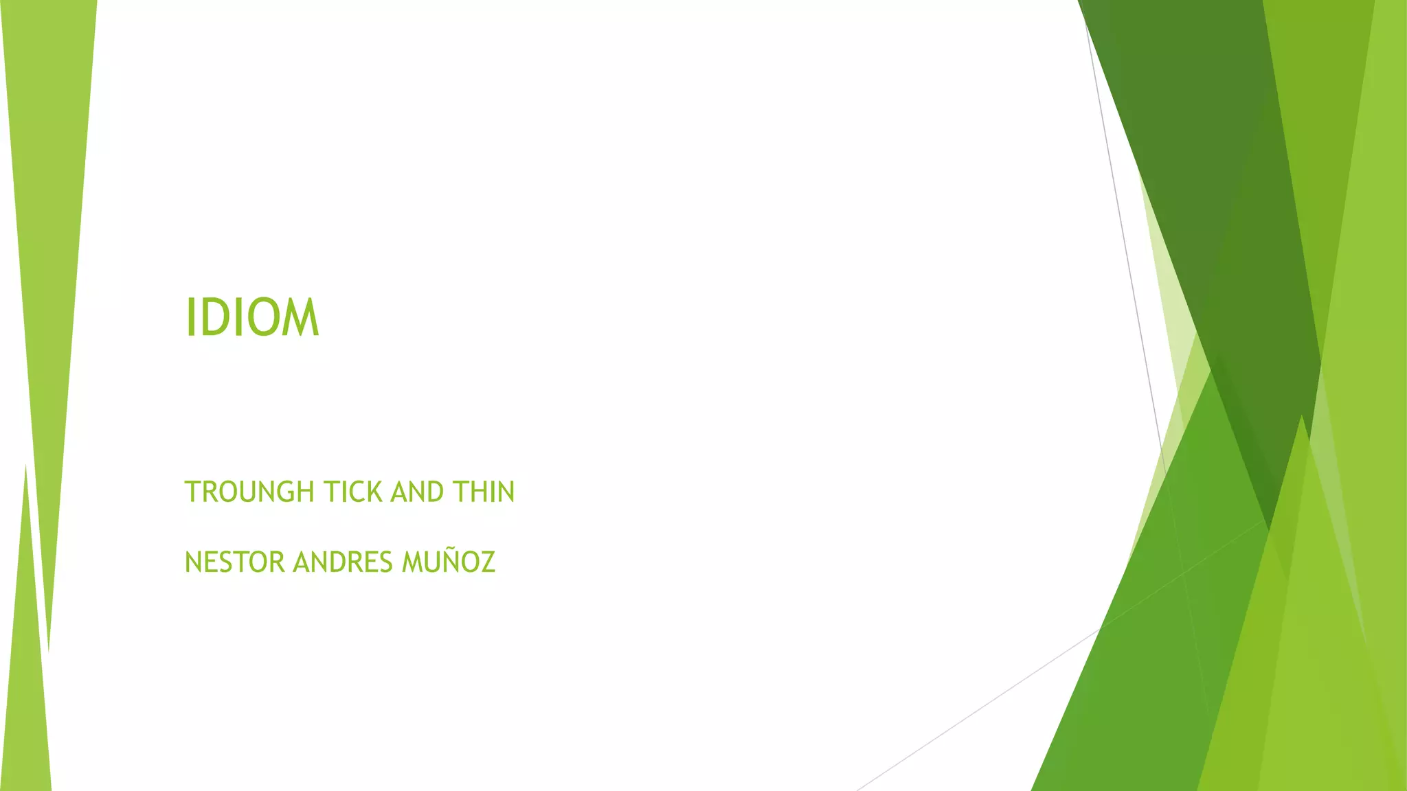 This idiom "through thick and thin" means to remain loyal and supportive of someone through both good and challenging times. The document provides examples of using the idiom to describe being together and sticking with someone through all situations over many years, as well as through both positive and negative experiences.