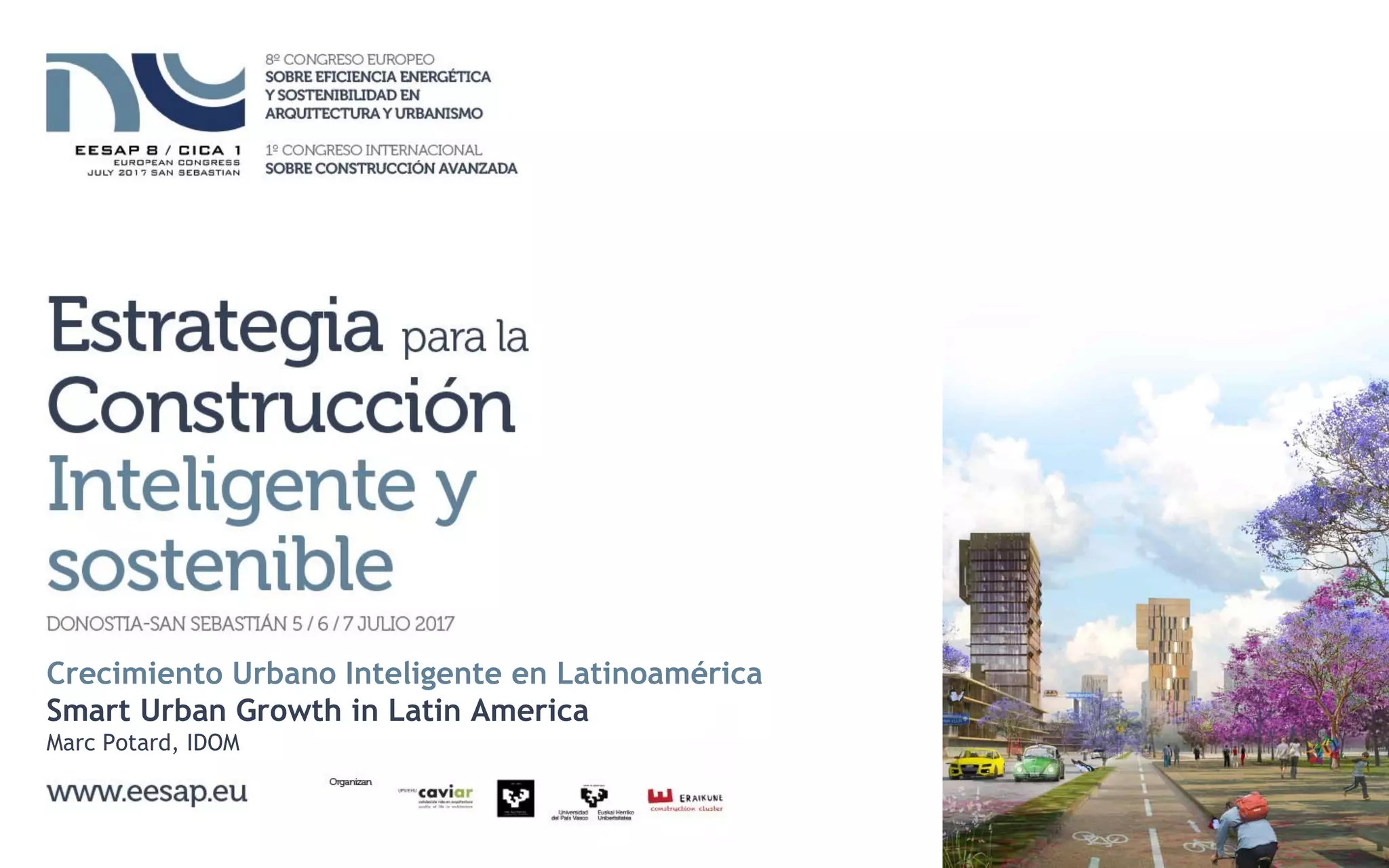 This document discusses smart urban growth strategies in Latin America. It notes that urbanization is a defining trend of the 21st century and that cities, particularly intermediate cities, will face challenges from climate change. Strategies discussed include promoting compact, dense urban development through infill and redevelopment to reduce emissions; conducting vulnerability assessments to inform climate-resilient planning; and establishing participatory planning processes. Financing sustainable projects is also a challenge given large capital needs, and innovative models like public-private partnerships are proposed. The role of new technologies, data, and networks in enabling more dynamic and efficient urban planning processes is also emphasized.