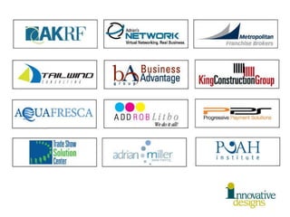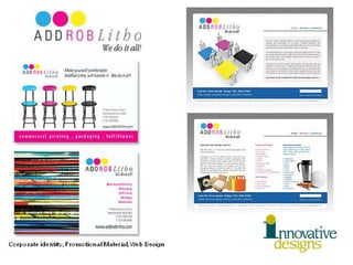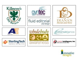 This document lists various design projects completed for clients in different industries including websites, brochures, logos, signage, and other collateral materials. Projects covered legal, medical, arts, restaurant, and fashion clients. Key clients mentioned include Felidia Restaurant, Lidia's Family Table, American Ballet Theatre, and Katherine kwei handbags. A variety of media are highlighted from websites to brochures to window displays.