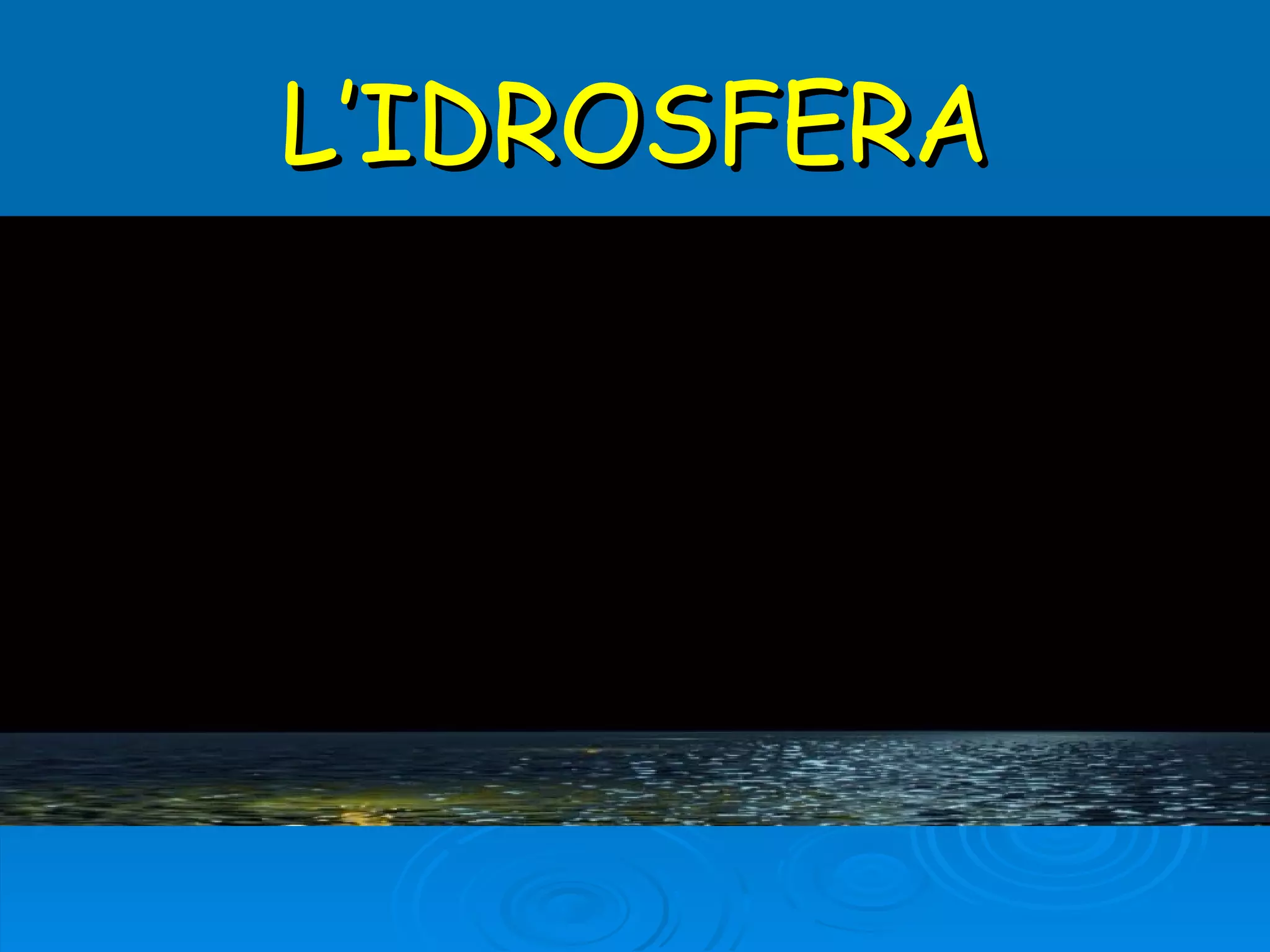 L'idrosfera comprende tutte le acque presenti sulla Terra, suddivise in stati solidi, liquidi e gassosi, e si muove attraverso un ciclo continuo di evaporazione e precipitazione. Le acque dolci rappresentano solo il 3% dell'acqua terrestre e si trovano in fiumi, laghi e falde sotterranee, mentre le acque minerali si arricchiscono di sali minerali attraverso processi naturali e devono mantenere determinate caratteristiche per essere considerate pure. Gli alti livelli di inquinamento delle acque richiedono processi di depurazione per garantirne la potabilità.