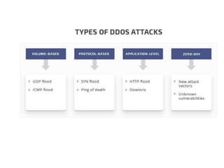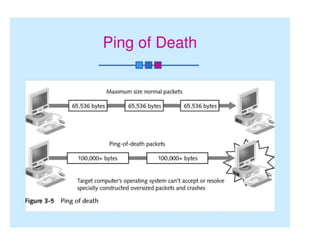 3. Denial of service (DoS) and distributed denial of service (DDoS) attacks aim to overwhelm network or system resources to interfere with normal operations.