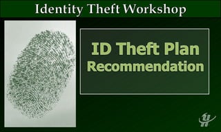 The document then provides tips on how to prevent identity theft and discusses services available to help deal with identity theft issues.