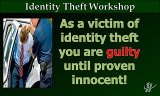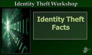 This document discusses the growing problem of identity theft in the United States. Some key points made are: