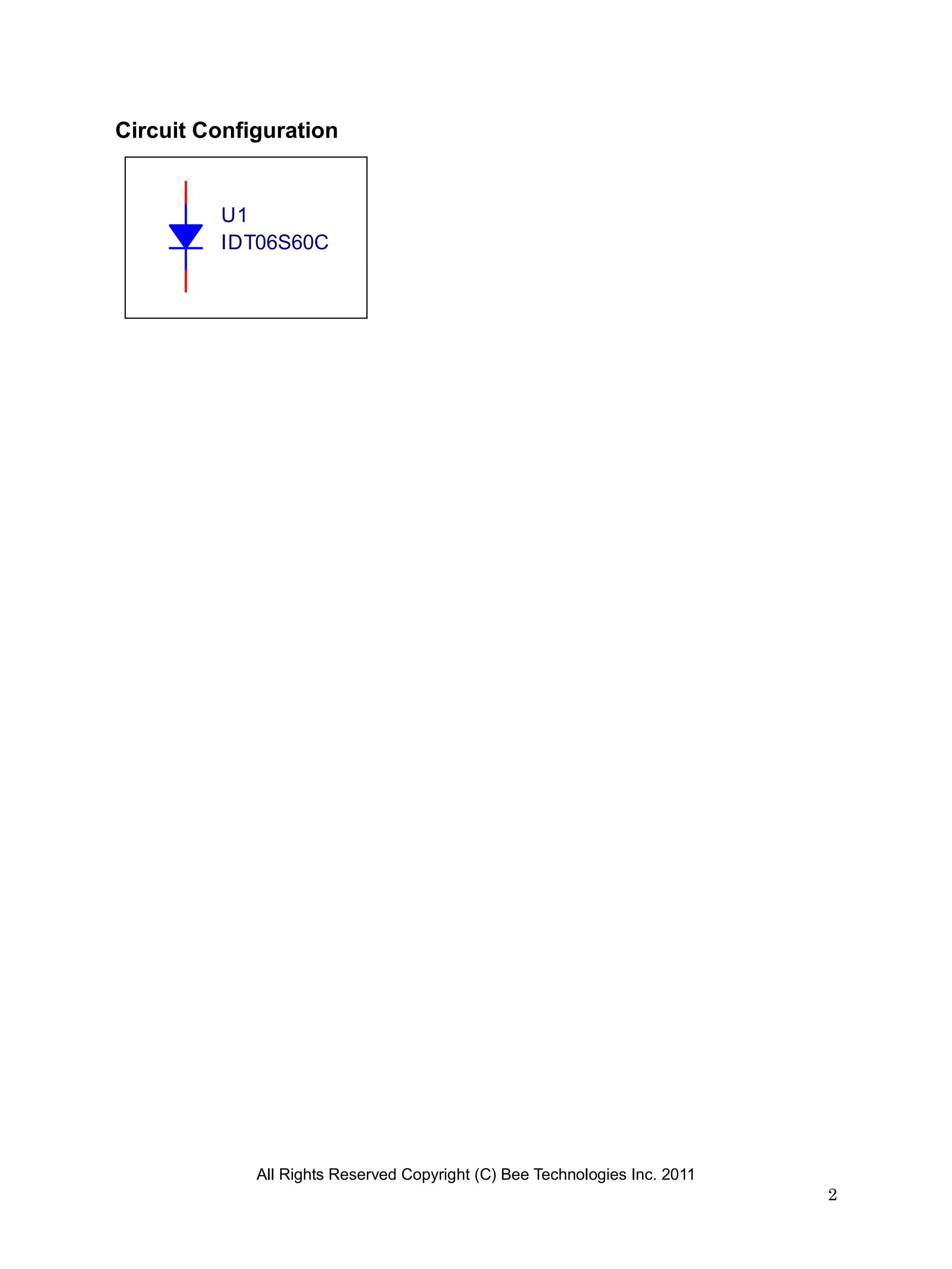 The document provides a detailed report on the device modeling of the silicon carbide Schottky diode, part number IDT06S60C, from Infineon, including circuit configurations and parameters. It includes simulation results for forward current, reverse current, and junction capacitance characteristics, along with comparison tables showing measurement versus simulation data. The content is protected by copyright from Bee Technologies Inc. (2011).