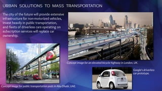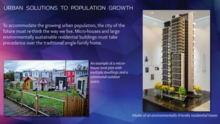 Global population has grown exponentially from 0.8 billion in 1927 to over 7 billion currently, and is estimated to reach over 9 billion by 2043. The percentage of people living in urban areas has also increased dramatically, rising from just 14% in 1800 to over 50% in 2008, and is projected to exceed 66% by 2050. Rapid population and urbanization growth will continue to present challenges for governments and societies around the world in terms of food, resources, infrastructure and standard of living.