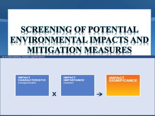 The document discusses an Initial Environmental Examination (IEE) for a proposed shopping plaza project in Islamabad, Pakistan. The project will include a 35-story building covering 2 hectares with estimated costs of $350 million USD. The IEE process identifies potential environmental issues to determine appropriate mitigation measures and requirements for additional studies. Key issues addressed include noise, waste, drainage, and traffic impacts. Public consultation is also recommended to address concerns from stakeholders. Baseline monitoring is suggested to set performance standards for contractors during construction.