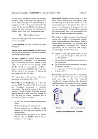 1) 802.11ac provides significantly faster speeds than previous standards like 802.11n through wider channel bandwidths of up to 160MHz, more spatial streams up to 8, and advanced technologies like beamforming and multi-user MIMO.