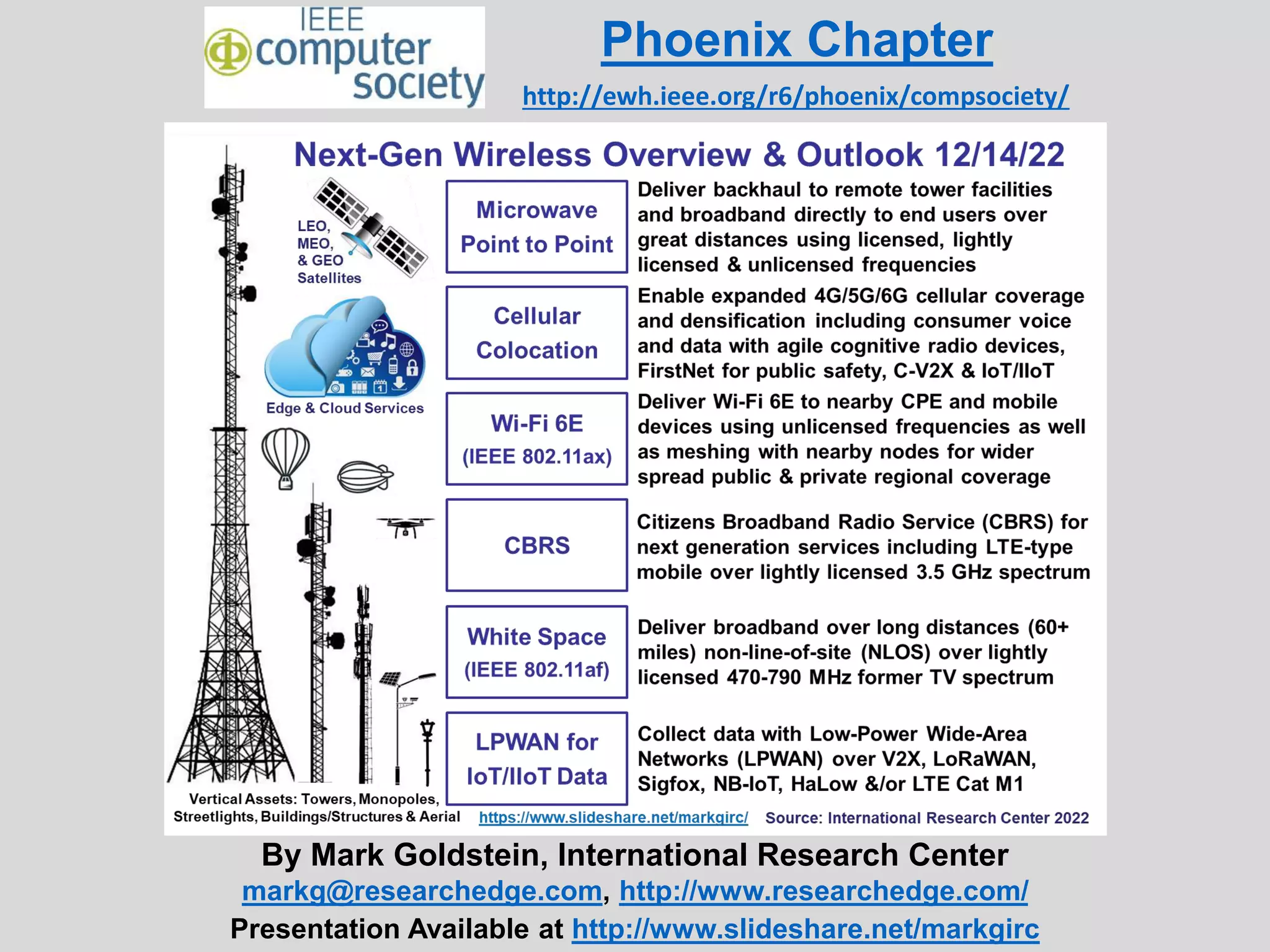The document provides an overview of the regulation and usage of radio spectrum in the U.S., highlighting the FCC's role in licensing frequencies and considering additional unlicensed spectrum for commercial and public use. It also discusses the evolution from 2G to 5G technologies, the deployment of mobile networks with cloud infrastructure, and various wireless technologies including Wi-Fi and Citizens Broadband Radio Service (CBRS). The impact of emerging technologies and requirements for bandwidth and latency on future connectivity and communications is emphasized.