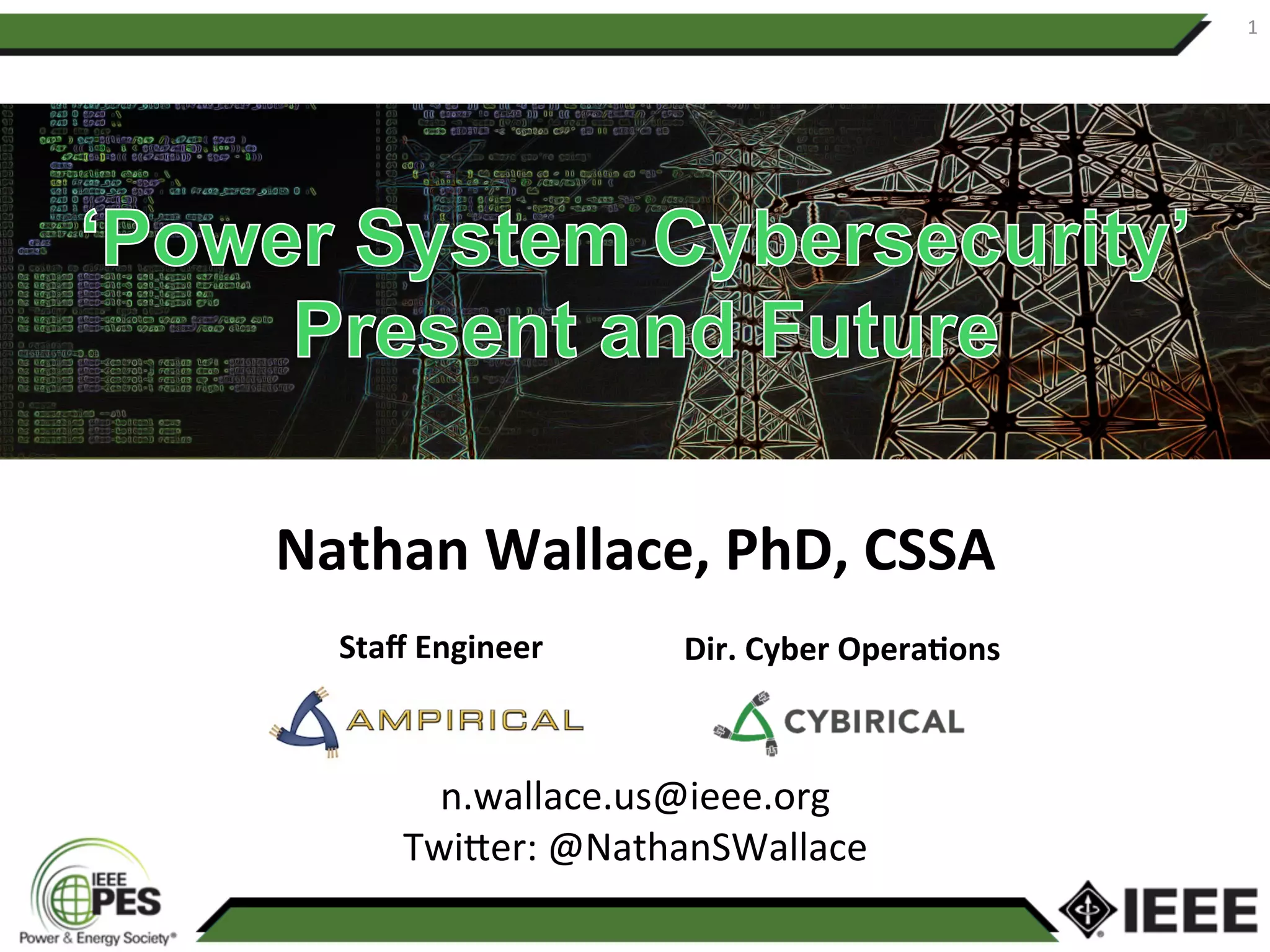 This document provides an overview of Nathan Wallace's background and experience in power engineering and cybersecurity. It discusses some of the challenges in implementing cybersecurity for power systems, including identifying critical cyber assets, determining responsibilities between IT and OT departments, and addressing compliance needs versus best practices. It also outlines major hurdles to improving cybersecurity such as overclassification of information, viewing it only as an IT issue or in defending only against threats. The document advocates for an engineering-based approach and standardization to help drive the field forward.