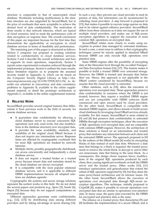 The document presents SecuredBAAS, a new architecture that facilitates secure and concurrent access to encrypted cloud databases by allowing multiple geographically distributed clients to execute operations without any intermediate servers, thus ensuring data confidentiality and system scalability. The architecture integrates existing cryptographic methods and is compatible with various database management systems, addressing issues of data management and consistency during simultaneous client operations. Performance evaluations demonstrate that SecuredBAAS effectively balances data confidentiality with usability, making it suitable for cloud database services.