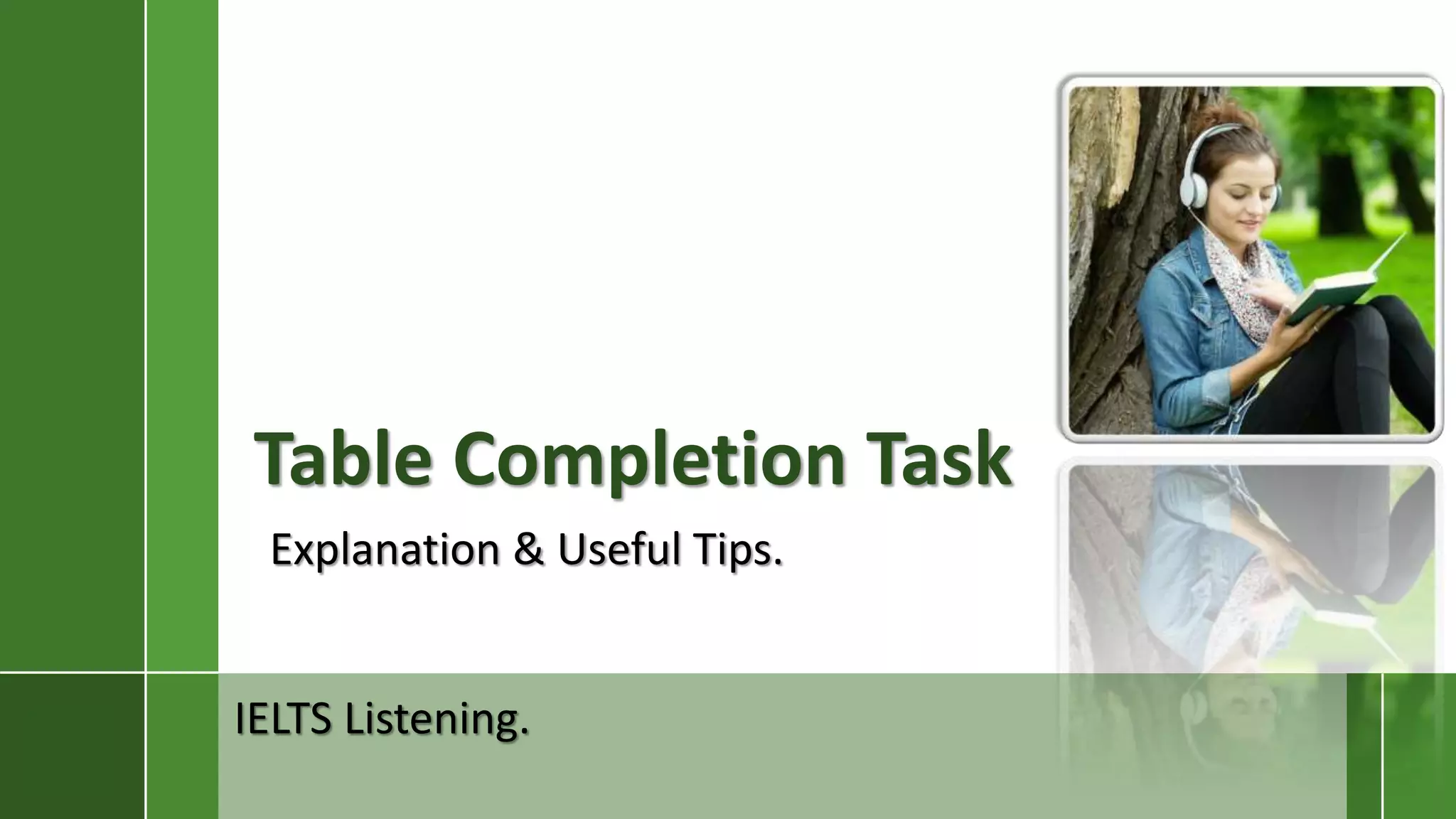 The document explains the IELTS listening table completion task, where candidates fill in gaps in a table based on audio information. It outlines the structure of the task, emphasizing the importance of understanding table arrangement and identifying keywords from the audio. Additionally, it highlights the differences in difficulty between the first and second parts of the listening test.