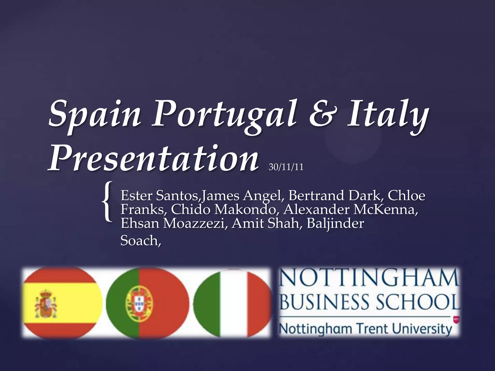 This document provides information about studying abroad opportunities in Spain, Portugal, and Italy. It discusses the EAE Business School in Barcelona, Spain, which offers master's degrees in subjects like human resources, supply chain logistics and marketing communications. It also provides details about the Lisbon University institution in Portugal, including a summer school program, and Brescha University in Italy. The document concludes with sections about internship opportunities in each country and plans for marketing these study abroad programs at an upcoming conference, including t-shirts, a fact file, and handouts.