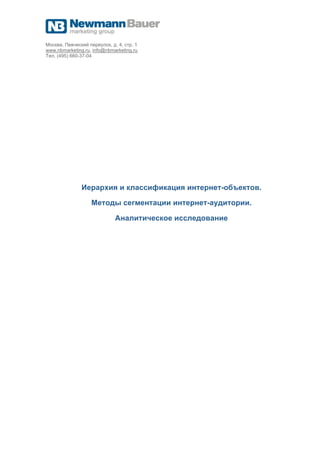 Документ анализирует эффективность интернет-рекламы в России, акцентируя внимание на важности сегментации аудитории и характеристиках пользователей. Основное внимание уделяется популярности социальных сетей и методам оценки посещаемости различных медиаплатформ. Также упоминается о необходимости мониторинга рекламных кампаний и изменениях в пользовательских предпочтениях.