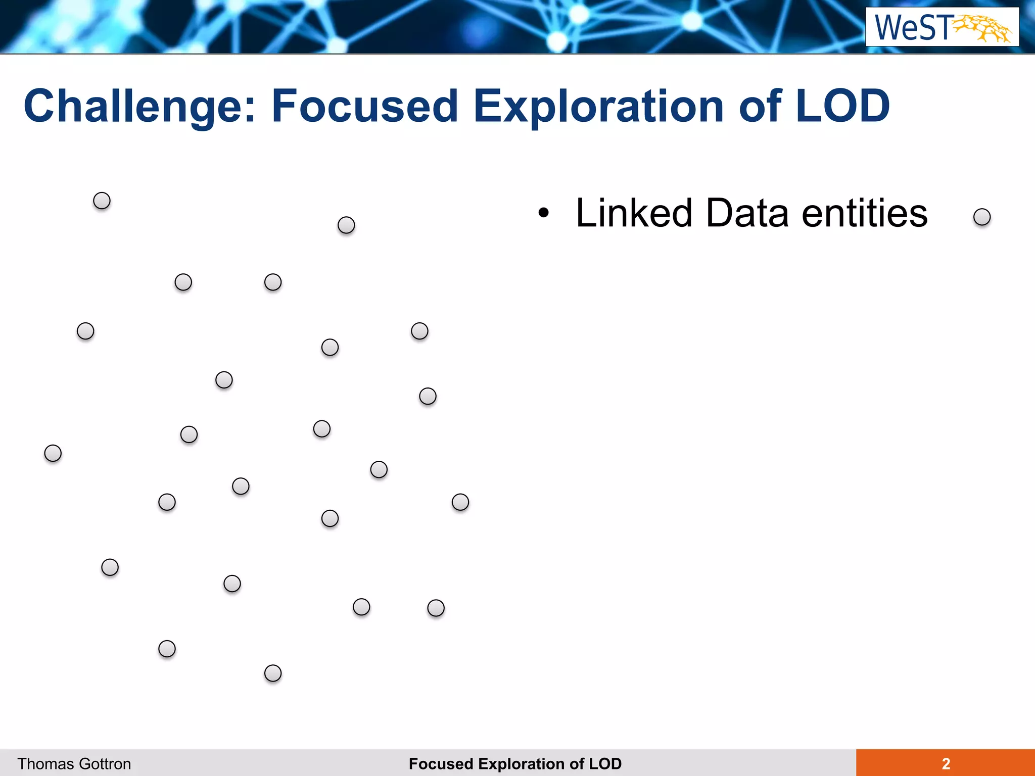 The document discusses focused exploration of linked open data (LOD), emphasizing challenges and methodologies for identifying relevant entities in a geospatial context. Various approaches, including schema semantics, supervised machine learning, and information retrieval inspired techniques, are evaluated for their effectiveness in classification and ranking of linked data. The results indicate that machine learning methods show the best performance, with suggestions for future work to generalize and improve the approaches.