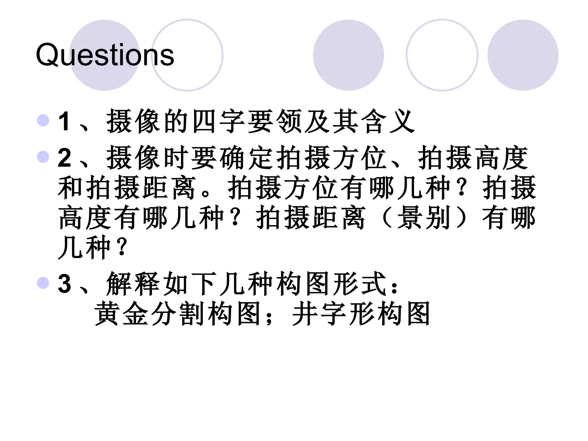 该文档讨论了摄像和电视照明的基本要素,包括拍摄方位、高度、距离及不同的照明器材。还详细介绍了各种电光源的特性和灯具类型,以及光影控制和构图形式的重要性。推荐了一些电影以供参考,借助实际案例分析画面构图和灯光在影视作品中的作用。