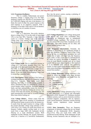 The document discusses harmonic analysis and mitigation techniques for small scale industrial loads within an electrical distribution system, focusing on the impact of harmonics caused by non-linear loads from power electronics. Various domestic and industrial loads were characterized, and simulation studies were performed using PSCAD/EMTDC to analyze current and voltage harmonics. Mitigation strategies using passive and active filters were evaluated to reduce harmonic distortion and improve power quality, highlighting the growing concern over power quality issues in modern distribution systems.