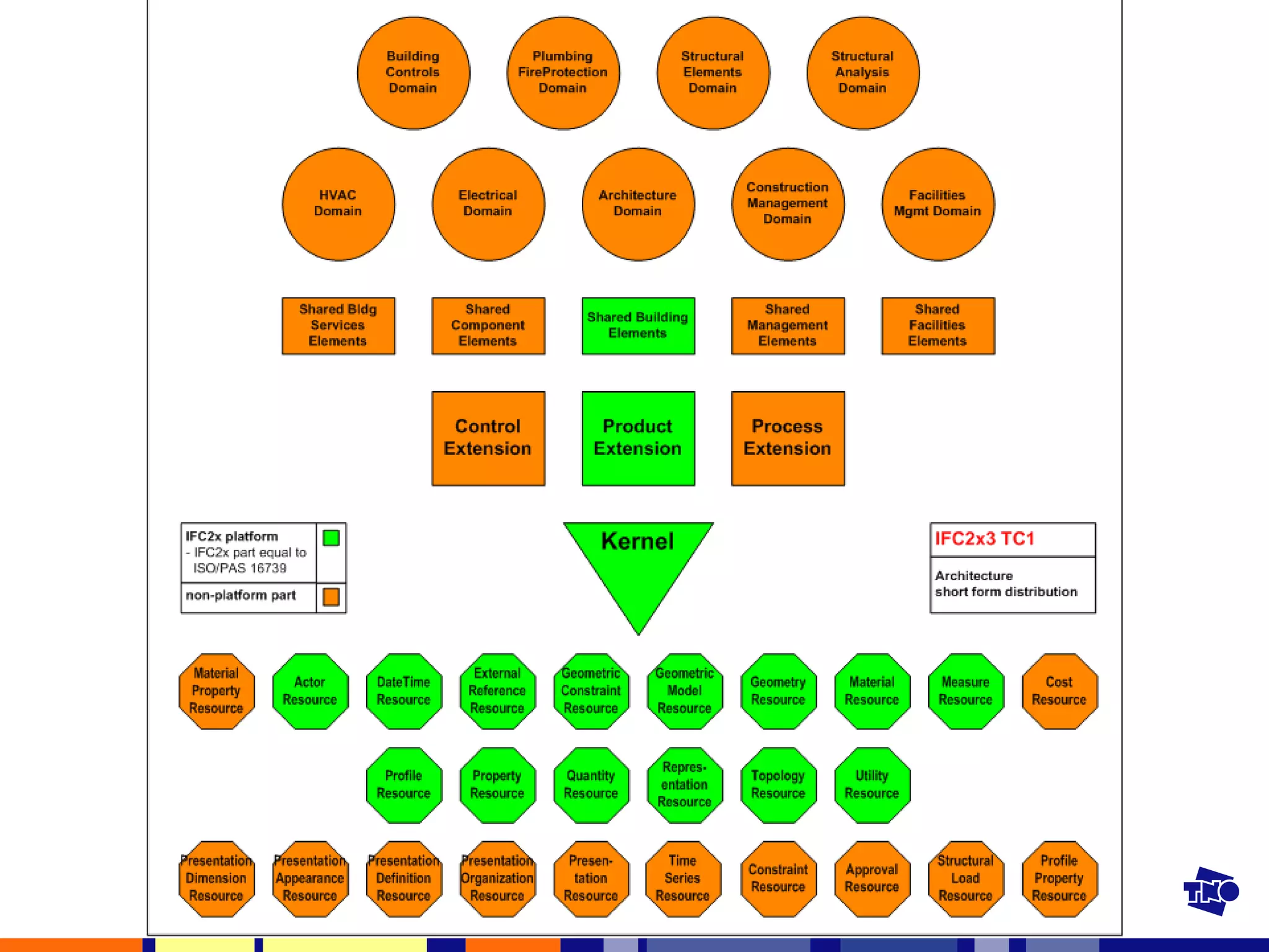 IFC geschiedenis IndustryFoundation Classes ‘ Open’ standaard Komt uit de ‘CAD-wereld’ Autodesk als driver Uit de eerste dagen van STEP (1985) Bedoeld als standaard voor ‘downstream applicaties’ Gebruikt als uitwisselstandaard Laatste versie 2x3 TC1