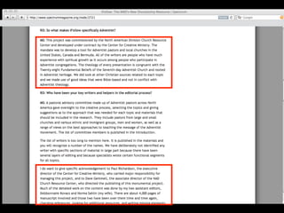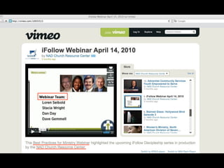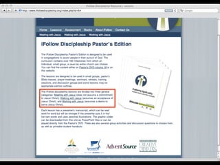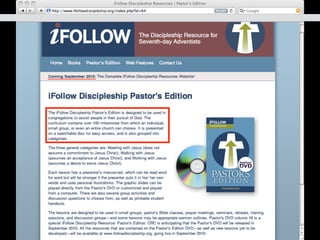 This document provides warnings about the iFollow discipleship resource and discusses concerns about its connections to figures and organizations promoting ecumenism and interfaith views. It notes that the curriculum development for iFollow was led by the Center for Creative Ministry and highlights several individuals involved with that organization who have expressed beliefs straying from traditional Adventism, such as questioning the authority of Ellen White. It also discusses pastors and speakers associated with iFollow who have embraced emerging church ideas and interfaith work.