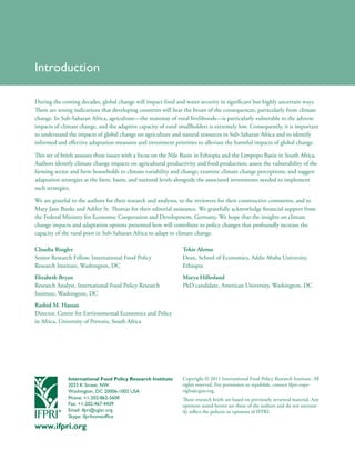 The document discusses the vulnerability of African agriculture, particularly in Ethiopia and South Africa, to climate change and its impacts on food and water security. It emphasizes the need for effective adaptation strategies and investment priorities to support rural smallholders who are highly susceptible to climate variability. The research aims to inform policymakers on the consequences of global change and improve adaptive capacity in sub-Saharan Africa.