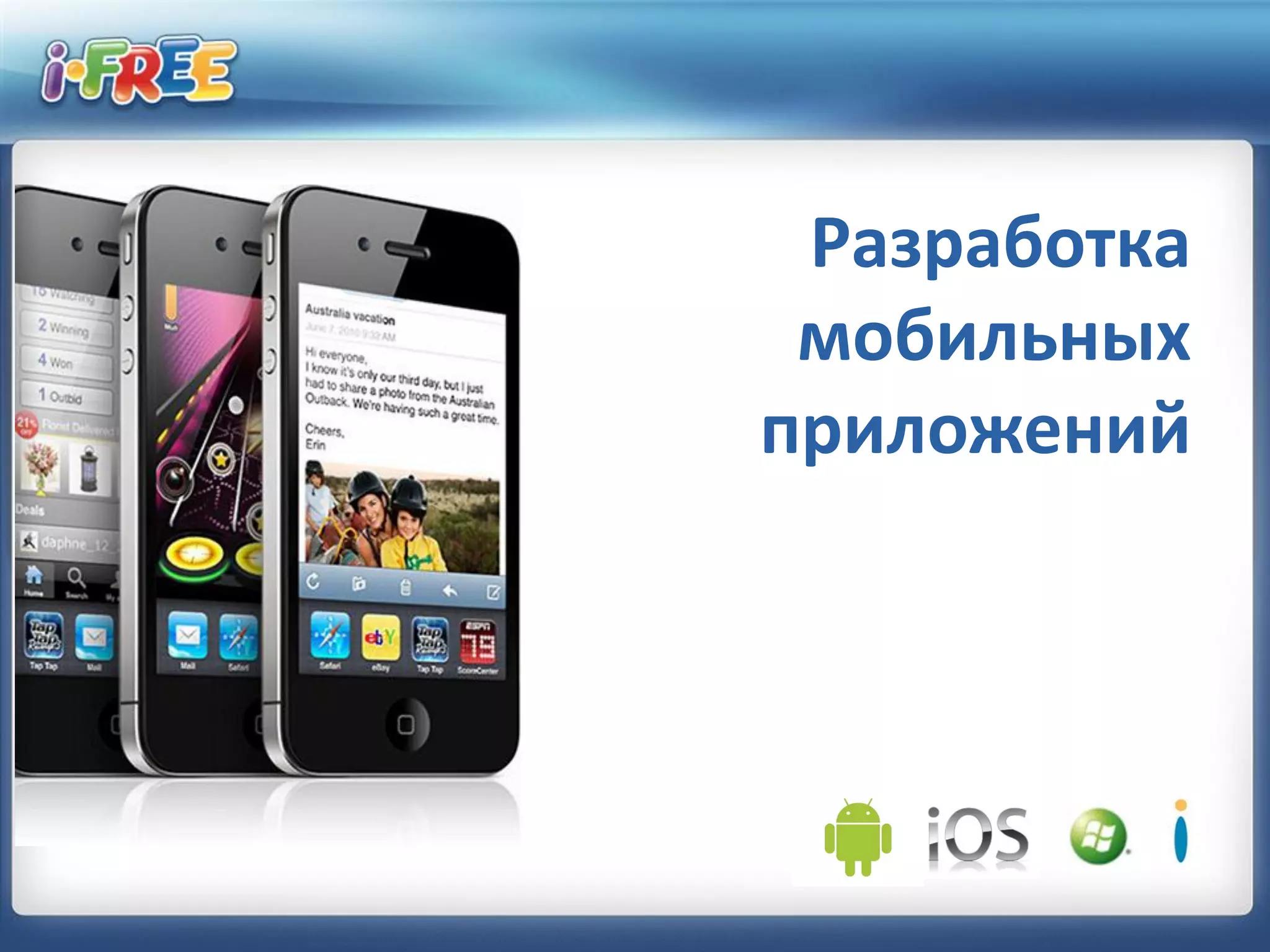 Документ описывает рынок мобильных приложений и прогнозирует рост числа скачиваний до 185 миллиардов к 2014 году. Компания i-free, занимающаяся разработкой мобильных приложений с 2004 года, выделяет свои достижения и проекты, включая приложение для продажи авиабилетов и программы лояльности. Также подчеркивается глобальное присутствие i-free, обеспечивающее услуги в 83 странах.