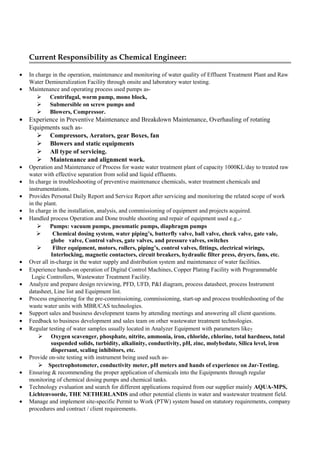 Mohammed Iftekhar has over 7 years of experience in process operation and maintenance for water treatment plants and chemical industries. He currently works as a Chemical Engineer for Addoha Company Ltd in Dammam, Saudi Arabia, where he is responsible for operating, maintaining, and monitoring the effluent treatment plant and water demineralization facility. Previously, he worked for SRSL and RSGBL in various process engineering and maintenance roles in India. He holds a Bachelor's Degree in Chemical Engineering and is proficient in software like SAP and Microsoft Office.