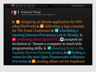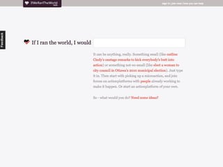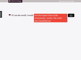 This document promotes transparency and microactions to improve the world. It advocates getting off good intentions and instead taking small, concrete actions through the ifwerantheworld.com website and social media accounts to enact positive change.