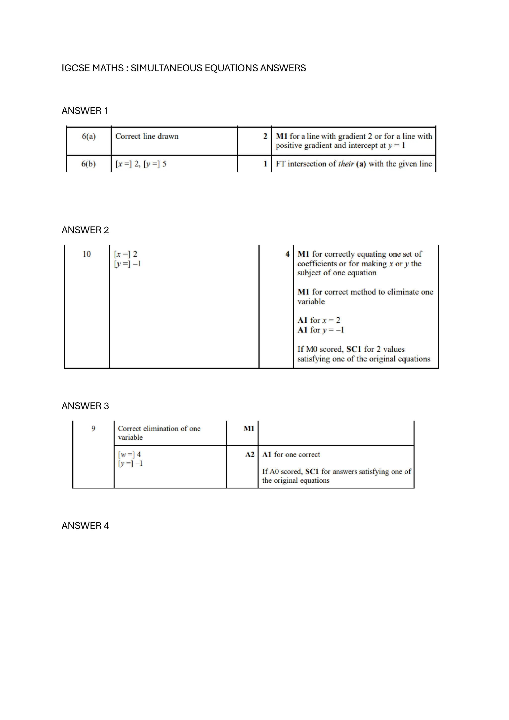 IGCSE MATHS SIMULTANEOUS EQUATIONS ANSWERS.pdf