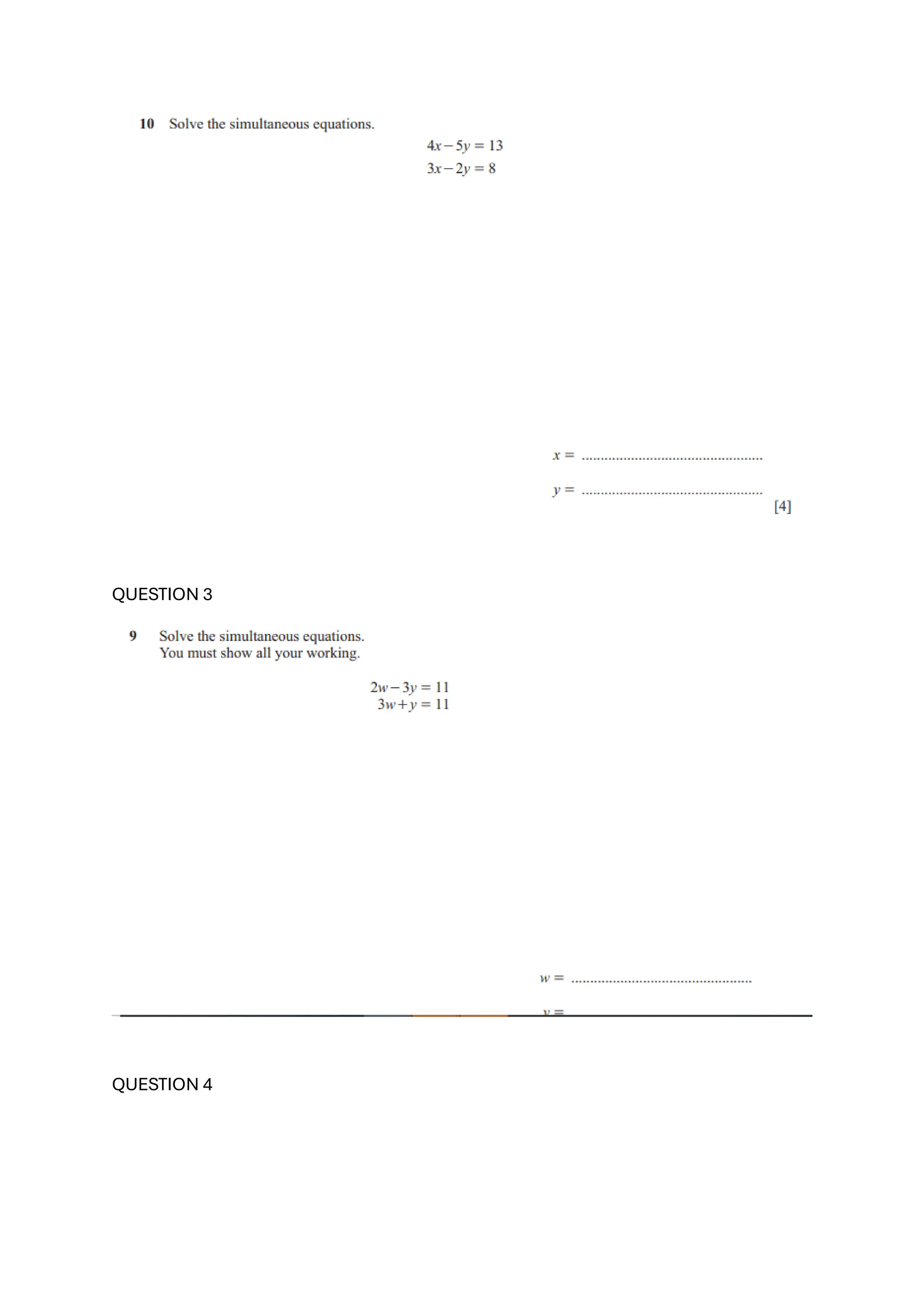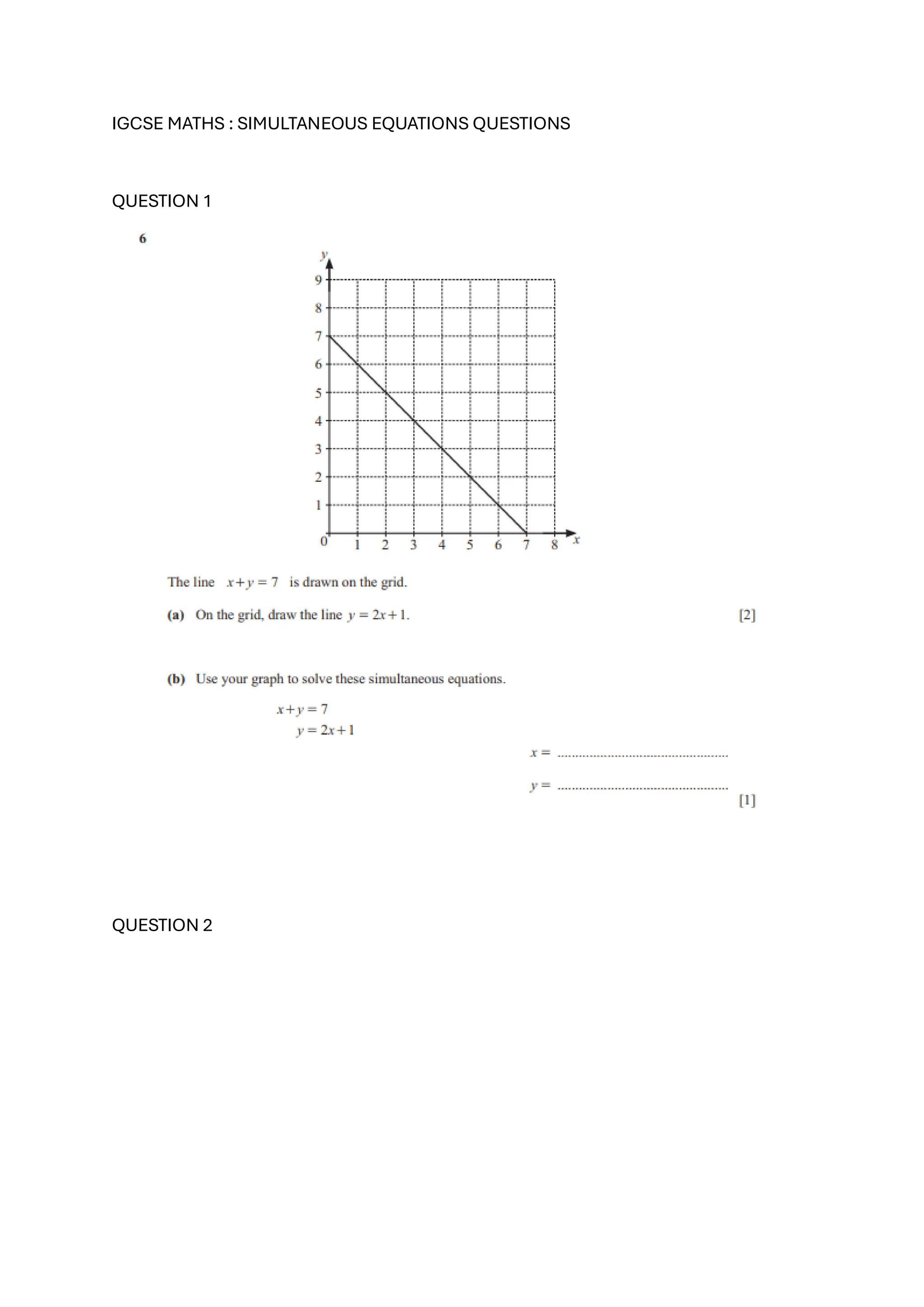 SIMULTANEOUS EQUATIONS QUESTIONS QUESTION 1 QUESTION 2
