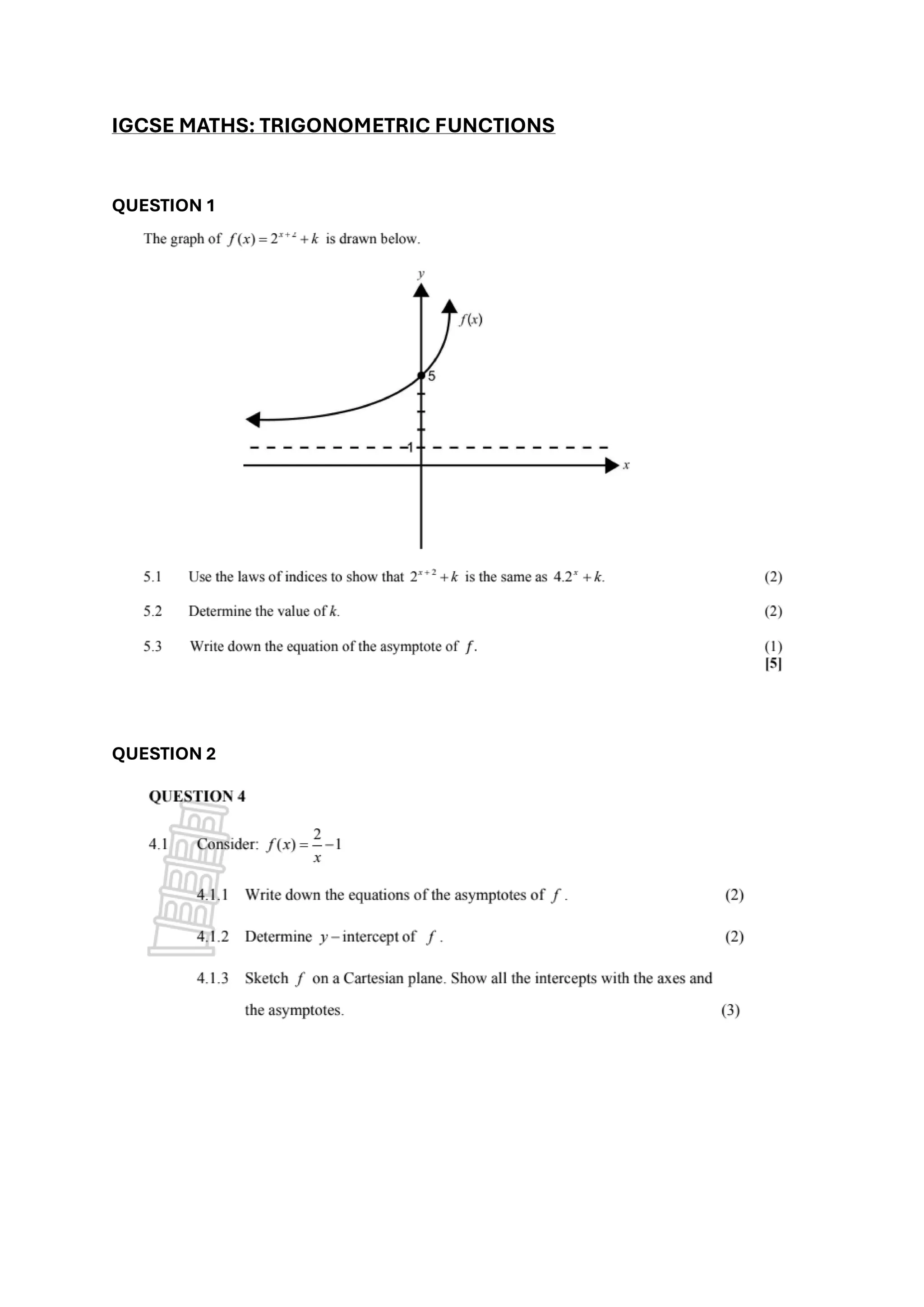 The document consists of a series of trigonometric functions questions, specifically labeled from question 1 to question 12. It appears to focus on IGCSE-level mathematics. Each question likely tests different aspects of trigonometric functions.