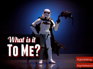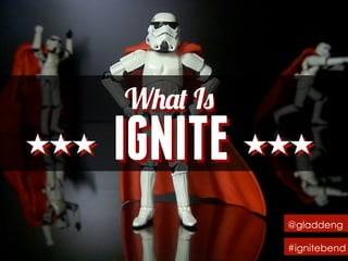 The document discusses the meaning of the word "IGNITE" from different perspectives. It asks what IGNITE means to the speaker, the reader, and everyone collectively. It then lists different hashtags and phrases that seem to represent different possible meanings of IGNITE. It concludes by asking what's next and stating that the collection of words and images represents what IGNITE is.