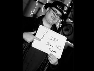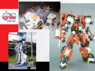 This document provides an agenda for an event. It introduces the host, John Wilker, and his background in conferences, blogging, and an event called Refresh Denver. It thanks supporters and lists other upcoming events. The agenda includes two rounds of 5-minute presentations on various topics, as well as an intermission with a musical act and a raffle. The document provides details on the lineup of presentations and encourages attendees to get the party started.