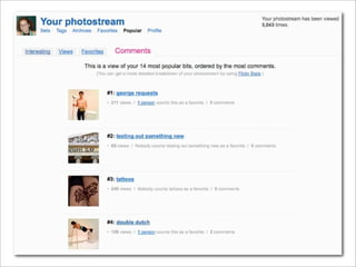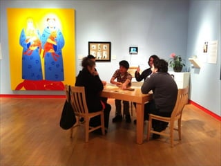 The document discusses strategies for enhancing visitor engagement in museums by personalizing their experiences and creating meaningful social interactions. It emphasizes the importance of asking the right questions to ignite curiosity, sharing personal narratives, and designing experiences that promote social connections among visitors. Key lessons include the need for genuine interest, speculative questioning, and developing profiles to better understand and connect with customers.