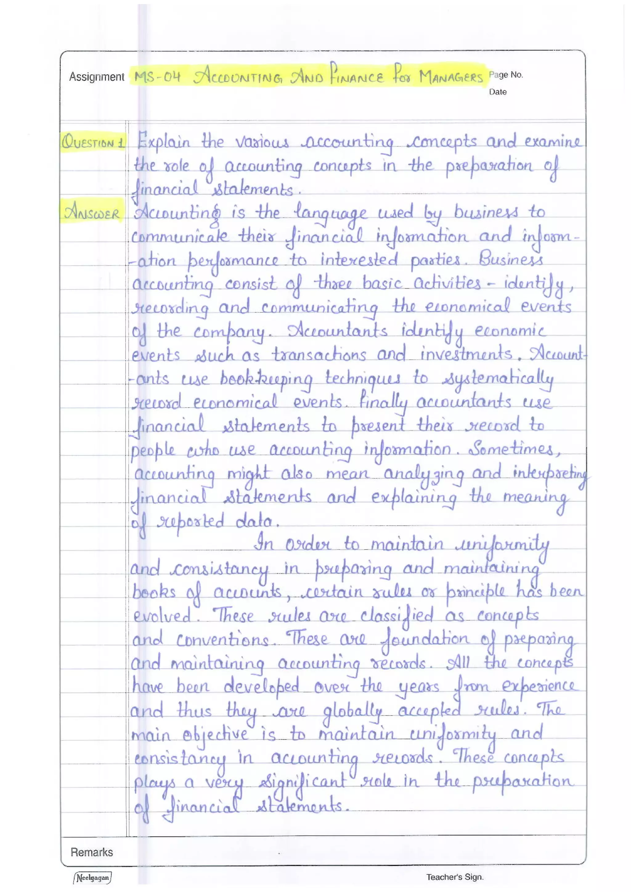 IGNOU MS-04: Accounting and Finance for Managers