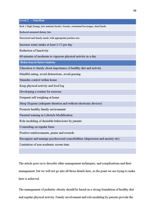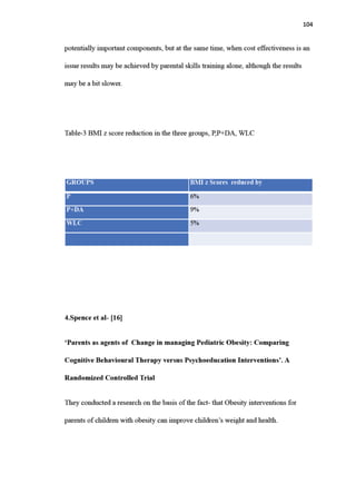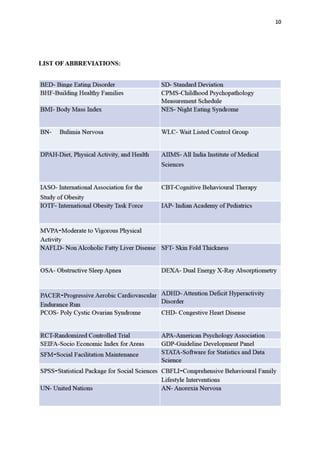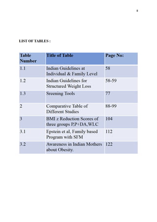 This dissertation examines the role of family counseling in managing obesity and overweight among children and adolescents in India, highlighting the rising prevalence of these issues, which is expected to reach 17 million obese children by 2025. The study reveals that parental involvement and counseling are instrumental in combating obesity, with various research indicating successful weight loss when parents are engaged in interventions. The impact of obesity on health, social dynamics, and the environment at home is emphasized, stressing the need for comprehensive strategies that include family support to address this public health challenge.