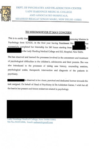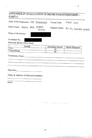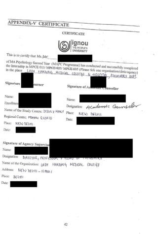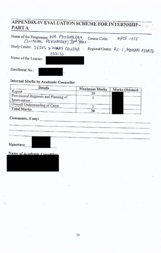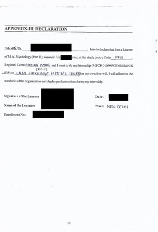 of IGNOU. This internship was carried out for a period of 240 hours under