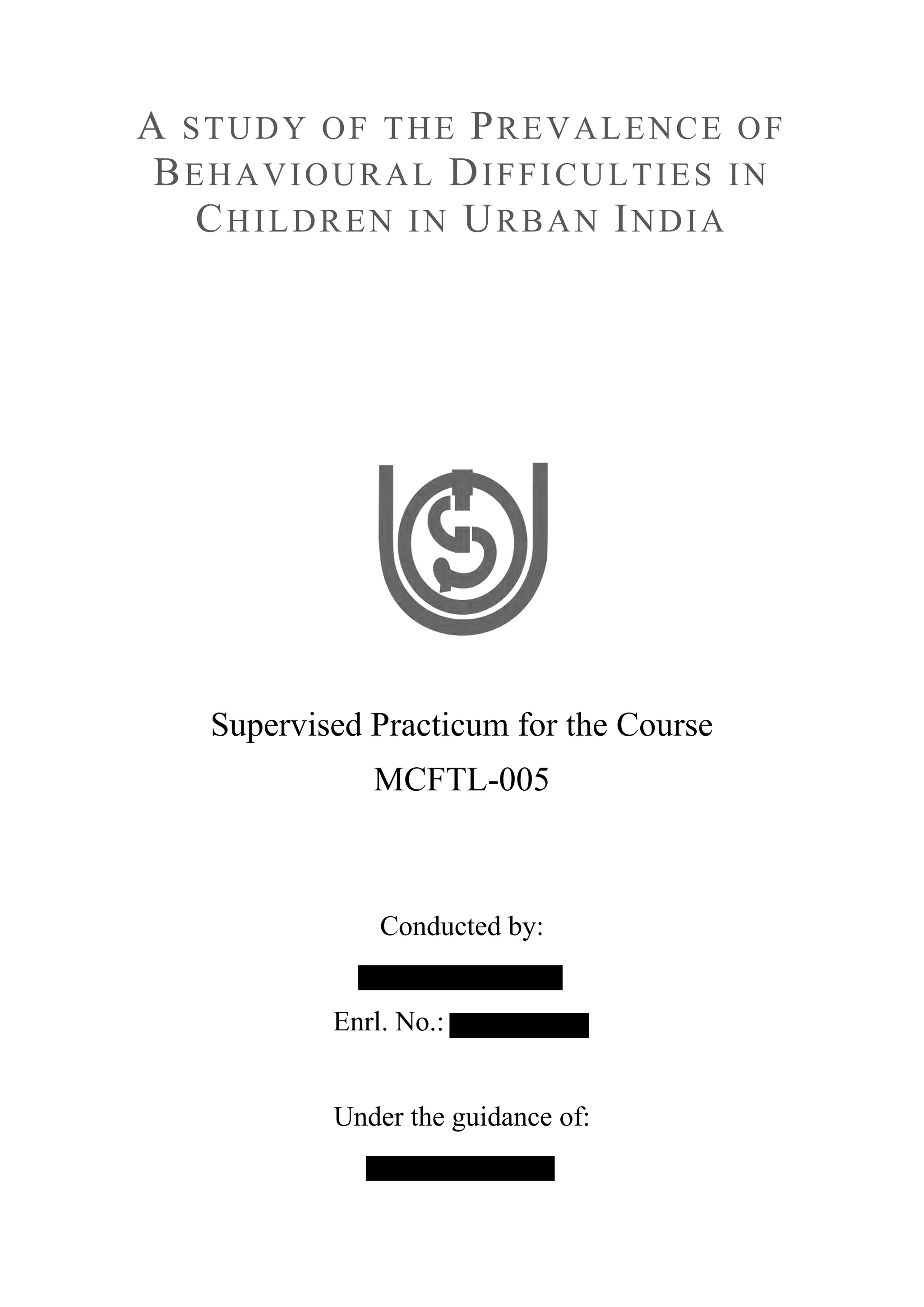 Astudy of the Prevalence of Behavioural Difficulties in Children in Urban India