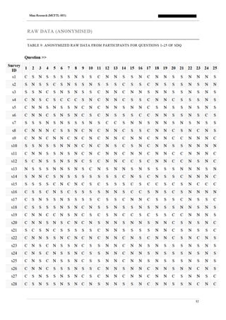 Table 9: Anonymized Raw Data from Participants for Questions 1-25 of SDQ.....................32