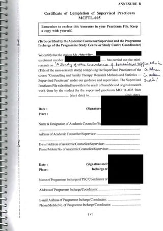 Annexure B: Certificate of Completion of Supervised Practicum.......................................III