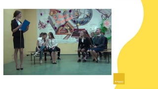 Документ описывает создание игрового ролика, включая технические аспекты, такие как оператор, осветитель, звукарь и декоратор. Он предоставляет сценарный план, состоящий из завязки, развития сюжета, кульминации и развязки, с акцентом на школу и юмор. Также упоминается компания Movavi, которая разрабатывает софт для работы с видео и фото, предлагая решения для обучения в школе.