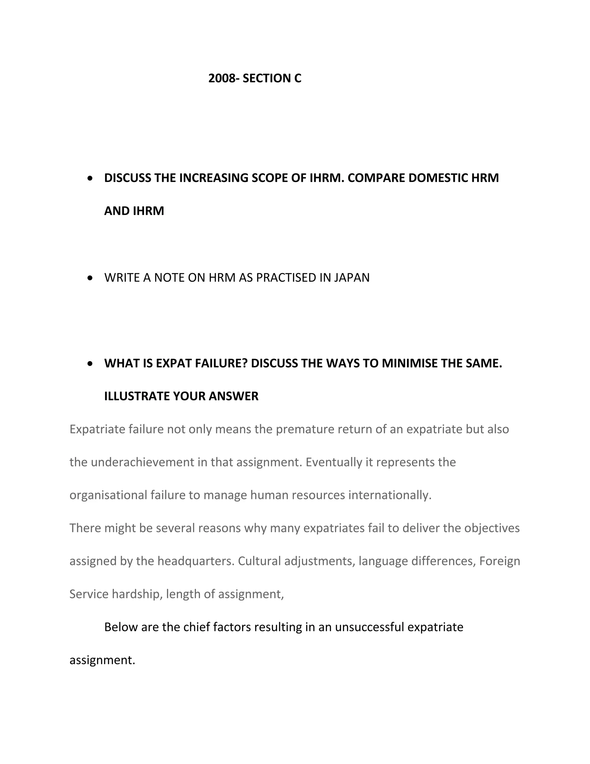 This document discusses factors that can lead to expatriate failure when working overseas, including family stress due to cultural adjustment and isolation, cultural inflexibility when facing deep cultural differences, emotional immaturity in handling new responsibilities and status, responsibility overload, and physical burnout from overwork and stress. It also discusses different approaches to international staffing, including the ethnocentric approach of primarily using parent country nationals and the polycentric approach of using host country nationals to manage subsidiaries.