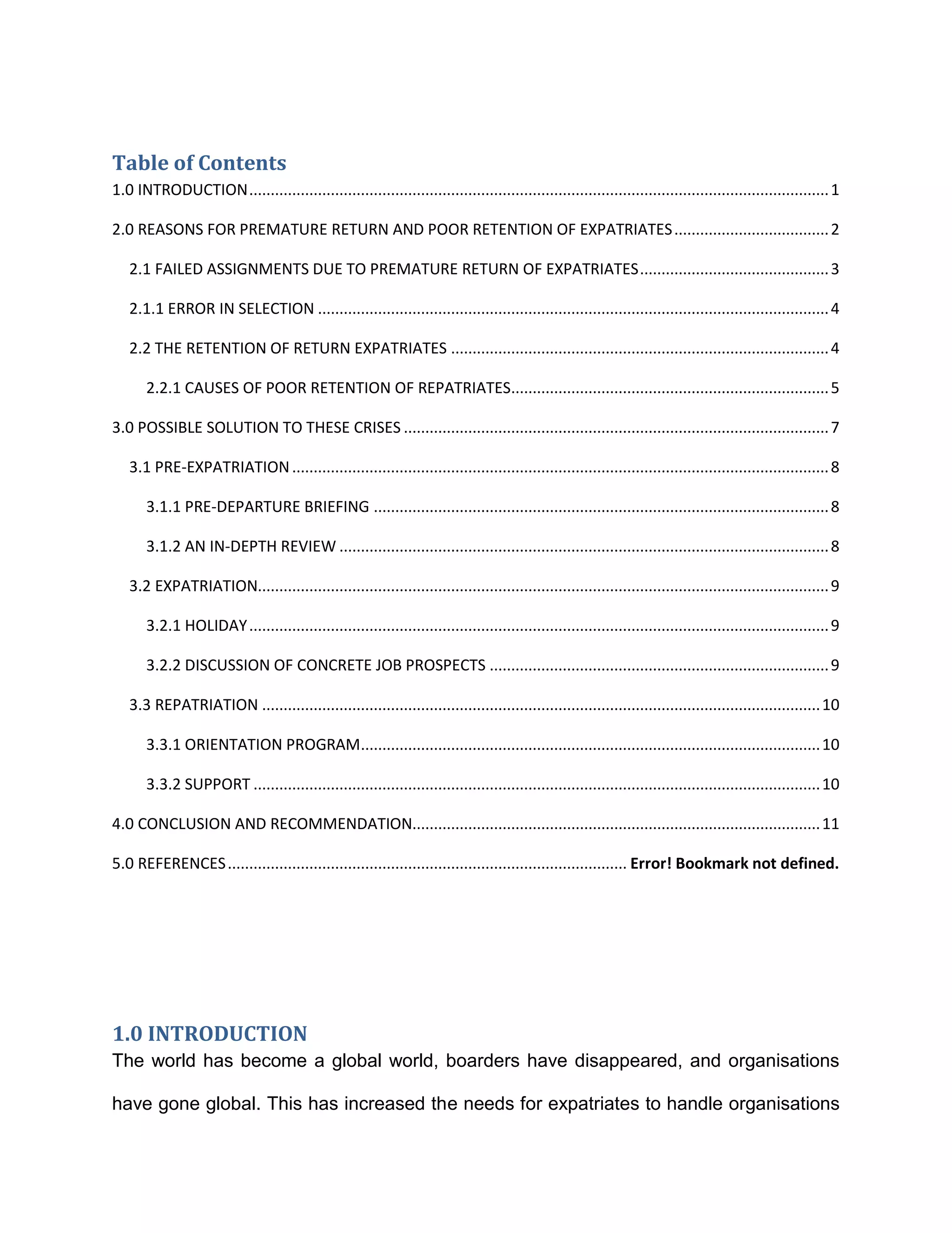 The document discusses reasons for premature return and poor retention of expatriates among multinational corporations. Failed assignments due to expatriates returning early can result in direct costs like salaries and indirect costs like loss of market share. Poor selection that does not consider interpersonal skills can also contribute to failure. Additionally, about 25% of expatriates who complete assignments choose to leave their company upon returning due to issues like reverse culture shock from differences between remembered and actual home culture, as well as changes that occurred during their time abroad. Solutions proposed include improving selection processes, providing support during expatriation and repatriation through programs.