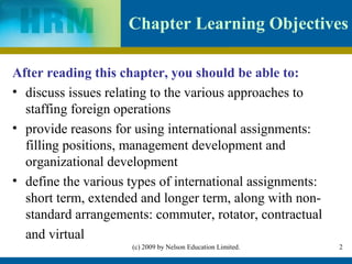 This document provides an overview of key topics in international human resource management (IHRM) including approaches to staffing foreign operations, reasons for international assignments, types of international assignments, and the roles of expatriates and non-expatriates in supporting international business activities. It also discusses calculating return on investment for international assignments and the various roles of the corporate HR function in managing international operations.