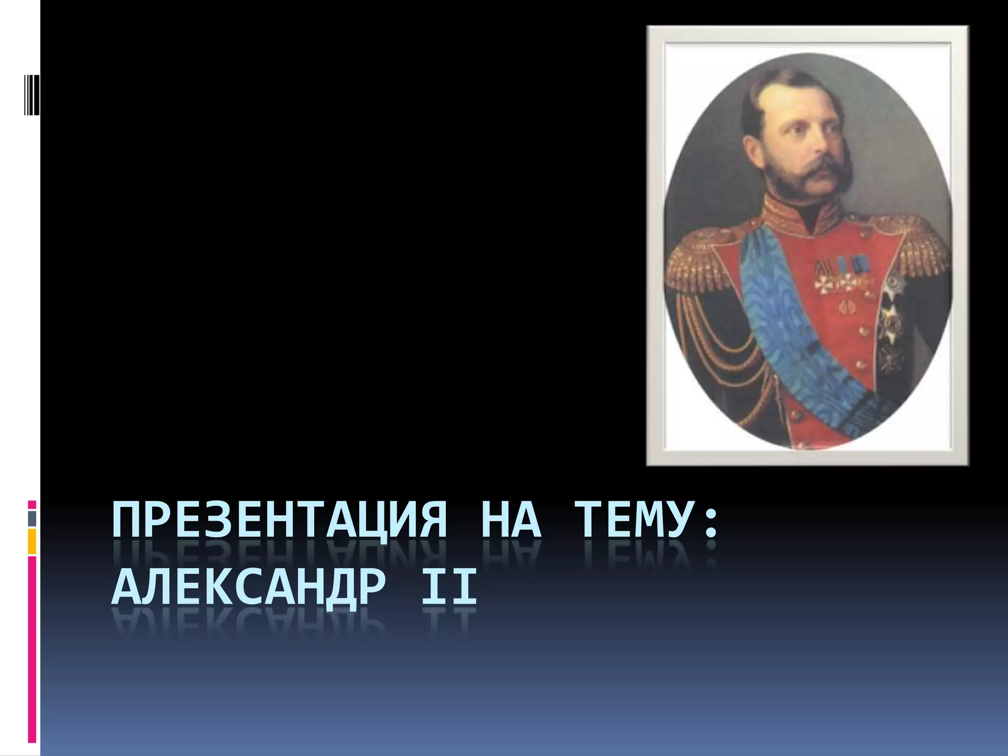 Документ представляет собой презентацию о жизни и правлении императора Александра II, охватывающую его детство, вступление на престол, отмену крепостного права и либеральные реформы. Также обсуждаются международные отношения, русско-турецкая война 1877-1878 годов и внутренние социальные движения. Убийство Александра II произошло в 1881 году и повлияло на незавершенные реформы, оставив его наследие как реформатора и освободителя.